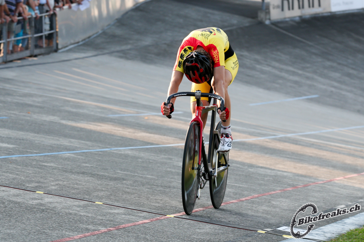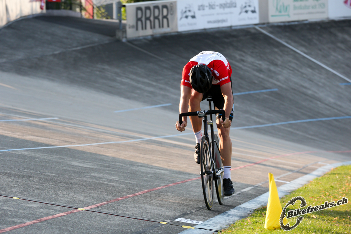 Der grosse Höhepunkt an diesem Abend war die Schweizer Meisterschaft der Steher. Das Steherrennen wurde mit grosser Spannung erwartet. Mehrere Fahrer hatten Medaillen Chancen, aber die spannendsten Frage war: ob Giuseppe Atzeni seinen Titel verteidigen konnte. Giuseppe Atzeni und sein Schrittmacher Mathias Luginbühl zogen gleich vom Start weg das Rennen mit sehr hohen Tempo an. Giuseppe Atzeni und Mathias Luginbühl legten sich eine Renntaktik bereit, um den erstmals bei den Steher fahrenden Claudio Imhof früh in Bedrängnis zu bringen. Der Plan der beiden Titelverteidigen ging auf. Bis sich Claudio Imhof durch das Feld gekämpft hatte, hatten Sie schon einen beachtlichen Vorsprung. Claudio Imhof fuhr ein super erstes Steherrennen mit seinem Schrittmacher Robert Buchmann und konnte seinen tollen Abend gleich mit der Silbermedaille krönen. Um den dritten Platz fuhr Peter Jörg mit Schrittmacher Wilfried Baumgartner und Michael Alborn mit seinen Motorradfahrer Dino Rey. Das bessere Ende hatte aber Altmeisten Peter Jörg an seiner 20. Steher Schweizermeisterschaft. Peter Jörg konnte Michael Alborn das ganze Rennen über hinter sich lassen und sicherte sich den dritten Platz auf dem Podium.