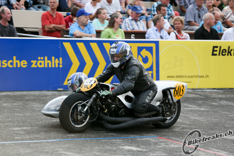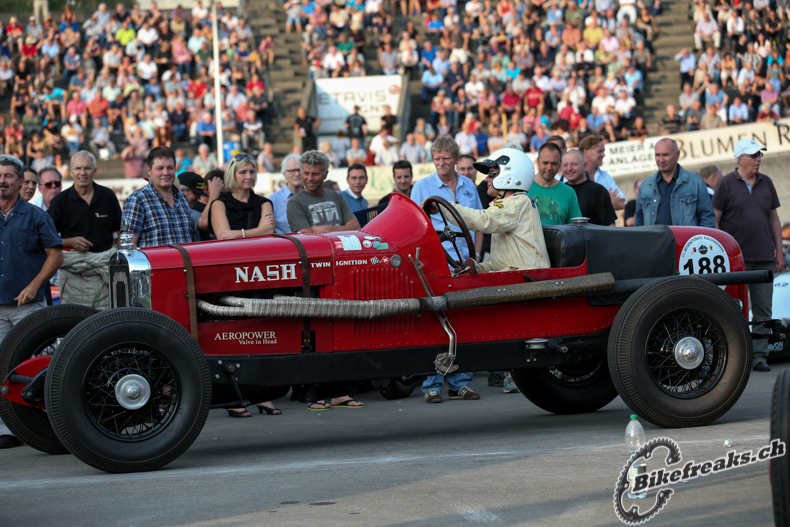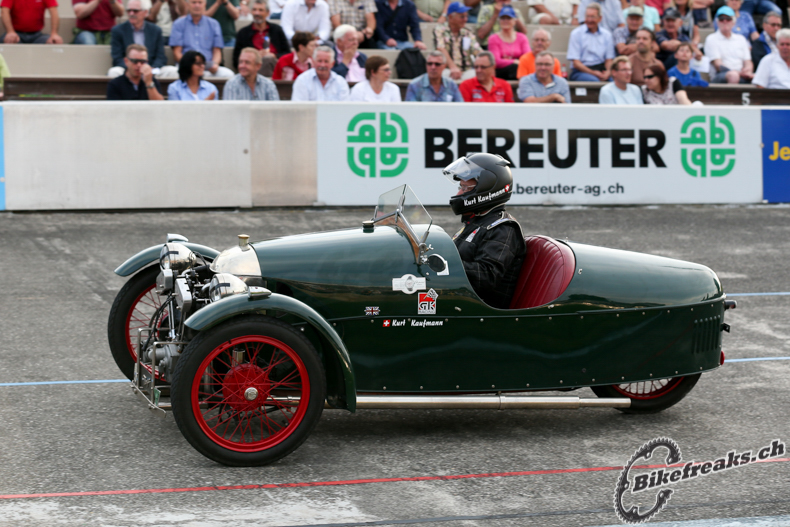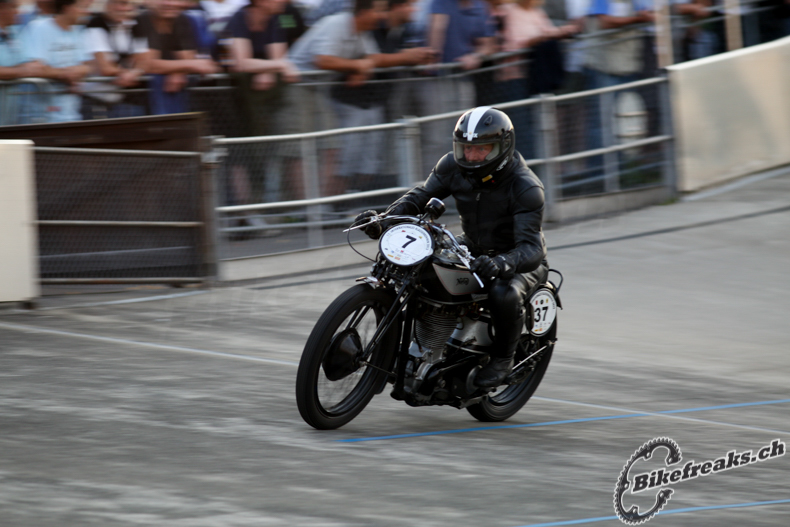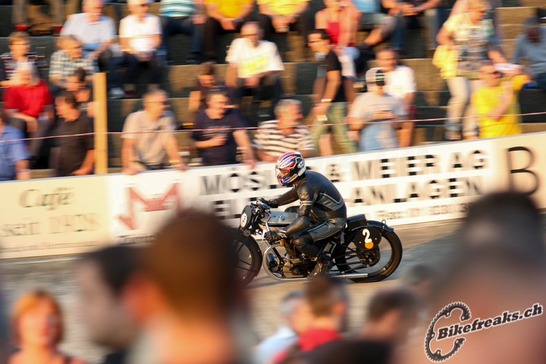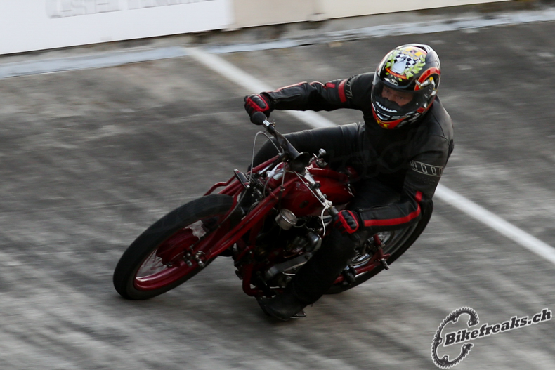 Schon von weitem hört man das Dröhnen der alten Motoren die von der alt ehrwürdigen Oerliker Rennbahn raus schalen. Heute ist ein Saison highlite auf der Offenen Rennbahn in Oerlikon, die Indianapolis Auto und Motorräder sind zu besuch. Viele alte tolle Rennwagen sind auf der Bahn und drehen ihre Demorunden, zum Teil mit einem sehr hohen Tempo. Unter den Auto und Motorräder hat es viele Raritäten wie der Stutz Blackhawk aus dem Jahr 1929 oder ein Nash 480 Aeropower von 1930, diese Motoren wurden auch für Flugzeuge verwendet und 1930 als Rennwagen gebaut. Ein etwas neueres Auto ist der Sauber C2 aus dem Jahr 1972 mit 1600ccm und 215 PS von Erst Sigg dieser wurde 2012/13 komplett restauriert. Diese Rennmaschine ist der zweite von Peter Sauber gebauter Sportwagen. Aber es waren auch alte spezielle Motorräder im Beton Oval zu bestaunen ein mit Methanol betriebenes Motorrad, die Norton Model 18 Road Racer von 1929. Dieses Motorrad wurde 1997 in die Schweiz Importiert und bestreitet diverse Berg- und Rundstreckenrennen. Ein Motorrad das sich besonders wohlfühlte auf der steilen Betonbahn ist die Indian Scout Boardtracker von 1924, gefahren von Daniel Mühletahler aus Illnau. Dieses Motorrad ist eine Original Steilbahn Rennmaschine mit der Besonderheit, dass ein Seitenwagen angeflanscht werden kann. Die alten Autos und Motoräder boten in drei Läufen eine super Show die auch sehr laut war, aber die 4400 Zuschauer dankten es den Fahrer mit tosendem Beifall.