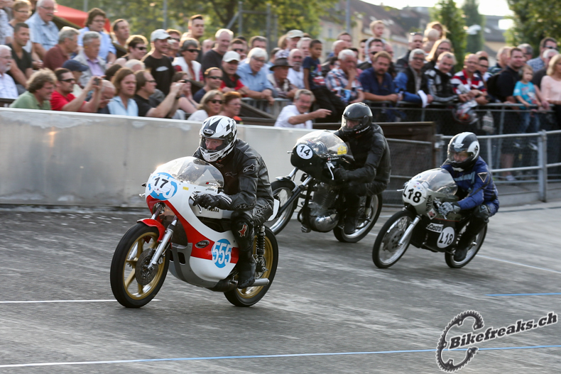 Auf die Jungen folgen die Alten, nicht ganz so alt wie die Autos und Motorräder, aber älter als die Junioren. Wie bei einem Scratch Rennen üblich blieb das Feld am Anfang des Rennen zusammen. In der 23 Runde wollten Claudio Imhof und Florian Sutter den zahlreichen Zuschauern was bieten und ergriffen die Flucht. Im Feld wurde nicht lang gezögert und Jan Freuler organisierte die Einholung der beiden Spitzenfahrer. Claudio Imhof fuhr weiter sein sehr hohes Tempo so das Florian Sutter nach 3 Runden nicht mehr mitfahren konnte. Claudio Imhof war 20 Runden vor Schluss allein an der Spitze verlieben, was aber bei einem Jagenden Feld auch für Claudio unmöglich ist dies durch zuziehen. so war 2 runden später die Flucht zu ende. Danach kehrte ein wenig Ruhe in das Feld ein, das Feld schlug ein sehr hohes Tempo an, so konnte kein Fluchtversuch mehr gestartete werden. Die ersten Positions Kämpfe begannen und das nutzte Claudio Imhof kaltblütig aus, drei Runden vor Schluss überraschte er alle im Feld mit einem weiteren Angriff. Mit seiner sehr guten Tempofahrt konnte er seinen Vorsprung schnell ausbauen und die Uneinigkeit im Feld ausnutzten. So kam er alleine auf die Zielgerade und hatte seine Konkurrenten um ¾ Runden distanziert. Der Rest des Feldes machte die Plätze 2 & 3 im Sprint aus, wo sich Jan Keller vor Jan André Freuler durchsetzen konnte.