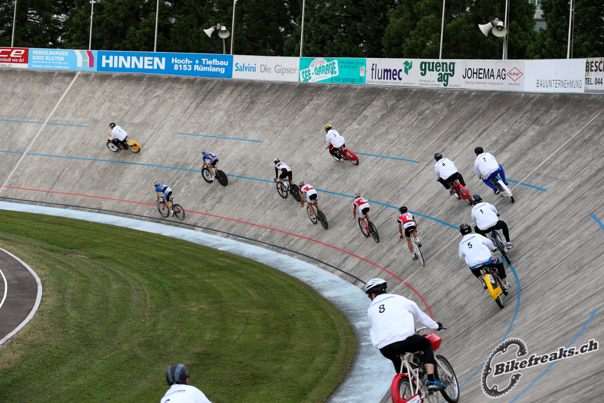 Das Scratch Rennen über 18 Runden wollte Claudio Imhof schon früh für sich entscheiden und nach 6 Runden griff Imhof aus dem Feld heraus an. Folgen konnten ihm Hannes Baumgarten, Christian Andres und Adrien Merkt. Nach 6 Runden zufahren musste Adrien Merkt die Spitzengruppe ziehen lassen, da die Spitzengruppe ein sehr hohes Tempo anschlug. Claudio Imhof steigerte in der folgenden Runde die Geschwindigkeit immer mehr und konnte so seine Ausreisser Kollegen in Bedrängnis bringen, als nächster musste Christian Andres dem hohen Tempo Tribut zollen, auch er musste die Spitzenfahrer Imhof und Baugarten ziehen lassen. Zwei Runden vor Ende des Scratchrennen kam es hinten im Feld zu einem Sturz, vom zuvor ausgerissen Adrien Merkt, leider konnte Oliver Beer nicht mehr ausweichen und auch er stürzte auf die harte Betonbahn in Oerlikon. Beide hatten Glück im Unglück und kamen mit starken Schürfungen davon. Imhof legte in der gleichen Runde nochmals einen Gang zu und konnte so auch den letzten Verfolger Hannes Baumgarten abschütteln und einen kämpferischen Solo Sieg feiern. Hannes Baumgarten musste aber auch noch voll zufahren, dass er sich den 2. Rang sichern konnte. Den Sprint des Feldes konnte sich Silvan Dillier sichern. Er wurde guter dritter.