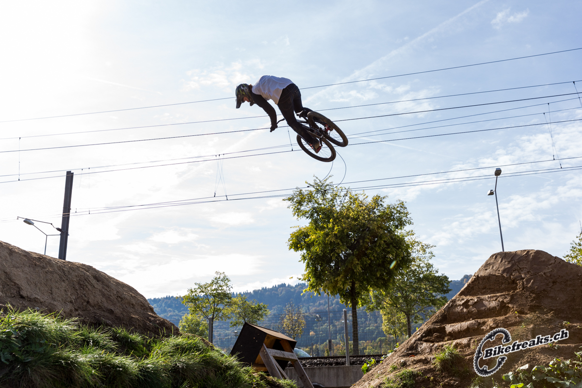 Petrus hat die Mountainbiker gestern mit Regen verschont, die anfängliche Kälte war bei den spektakulären Tricks schnell vergessen. Bereits im Training zeigte sich das hohe Niveau der Fahrer und die ersten Favoriten fürs Podest wurden bei den Zuschauern ausgemacht. Tim Weber (SUI) ist beim Training leider gestürzt und konnte nicht mehr am Contest teilnehmen, ebenso wie Stephen Brullé (SUI), welcher sich am Vortag beim Training verletzt hat. Wir wünschen den beiden gute Besserung und freuen uns auf die nächste gemeinsame Saison im Jumppark. Das Bike von Vinnie Janssens (NLD), der für den Contest extra aus Holland angereist ist, hielt seinen Tricks leider nicht stand. Seine Kollegen wurden von ihm während dem Contest aber tatkräftig angefeuert.